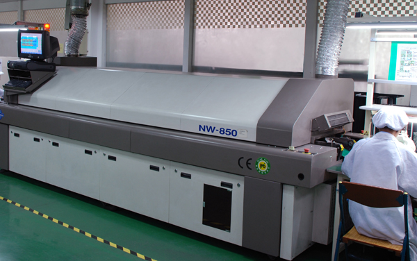 無鉛八溫區(qū)熱風回流焊設備,用于表面貼裝基板的整體焊接,整機采用計算機控制,具有Win2000操作界面和豐富的軟件功能、具有自動傳送的隧道式結構,由多預熱區(qū)、焊接區(qū)、風冷區(qū)組成,全熱風加熱方式,上、下溫區(qū)獨立熱源,各加熱區(qū)單獨PID控溫,具有通訊控制的無級調速功能。